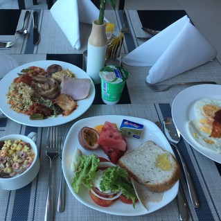 (右) 아마리 방비엥 조식입니다. 아주 만족스러웠습니다.